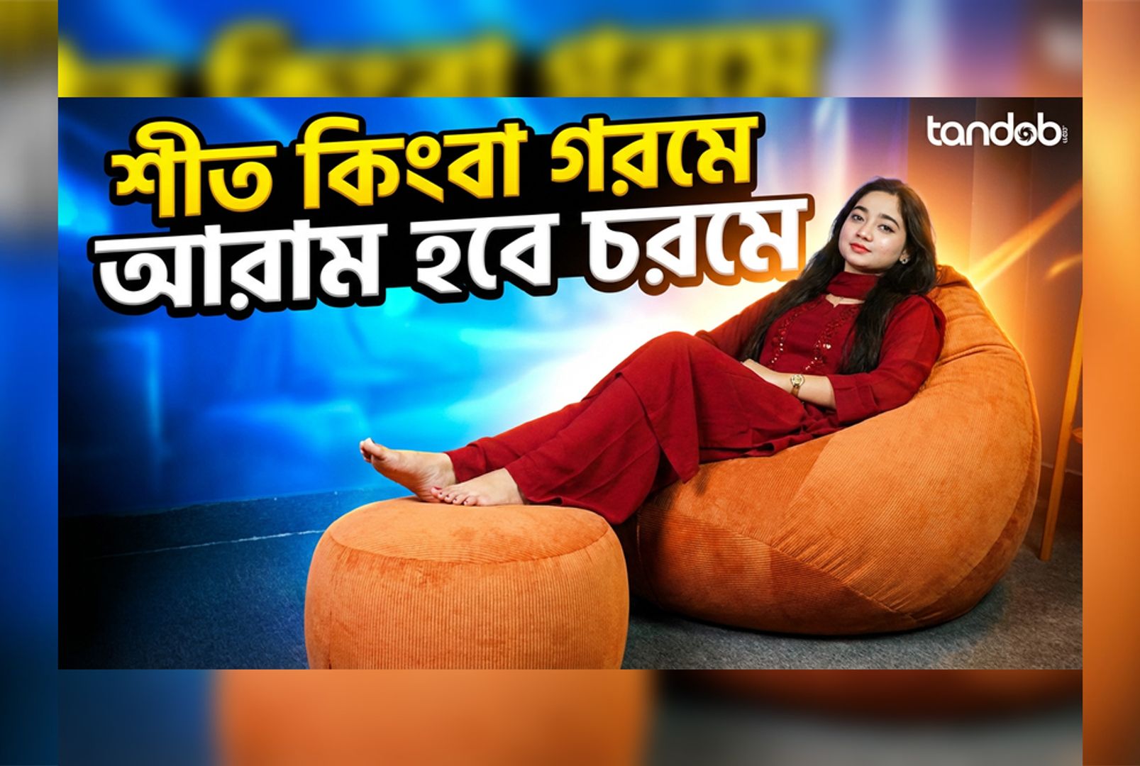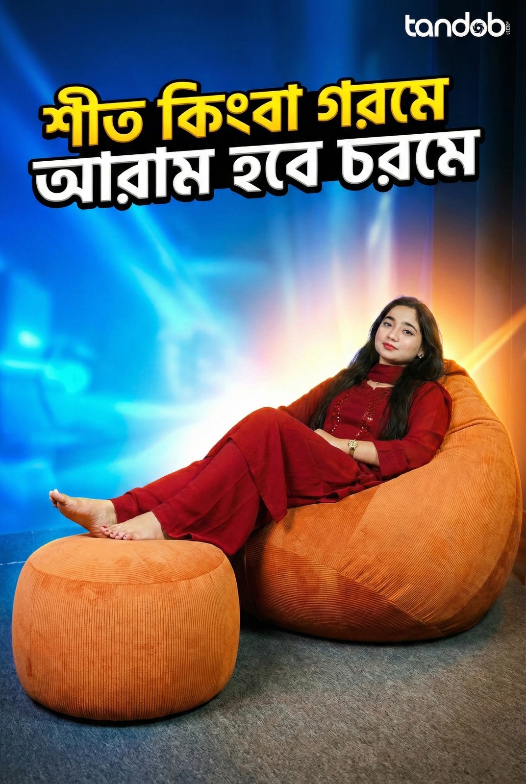 XXXL High Long Bean Bag Chair, Leg rest & Cushion - Combo Set - Orange Color